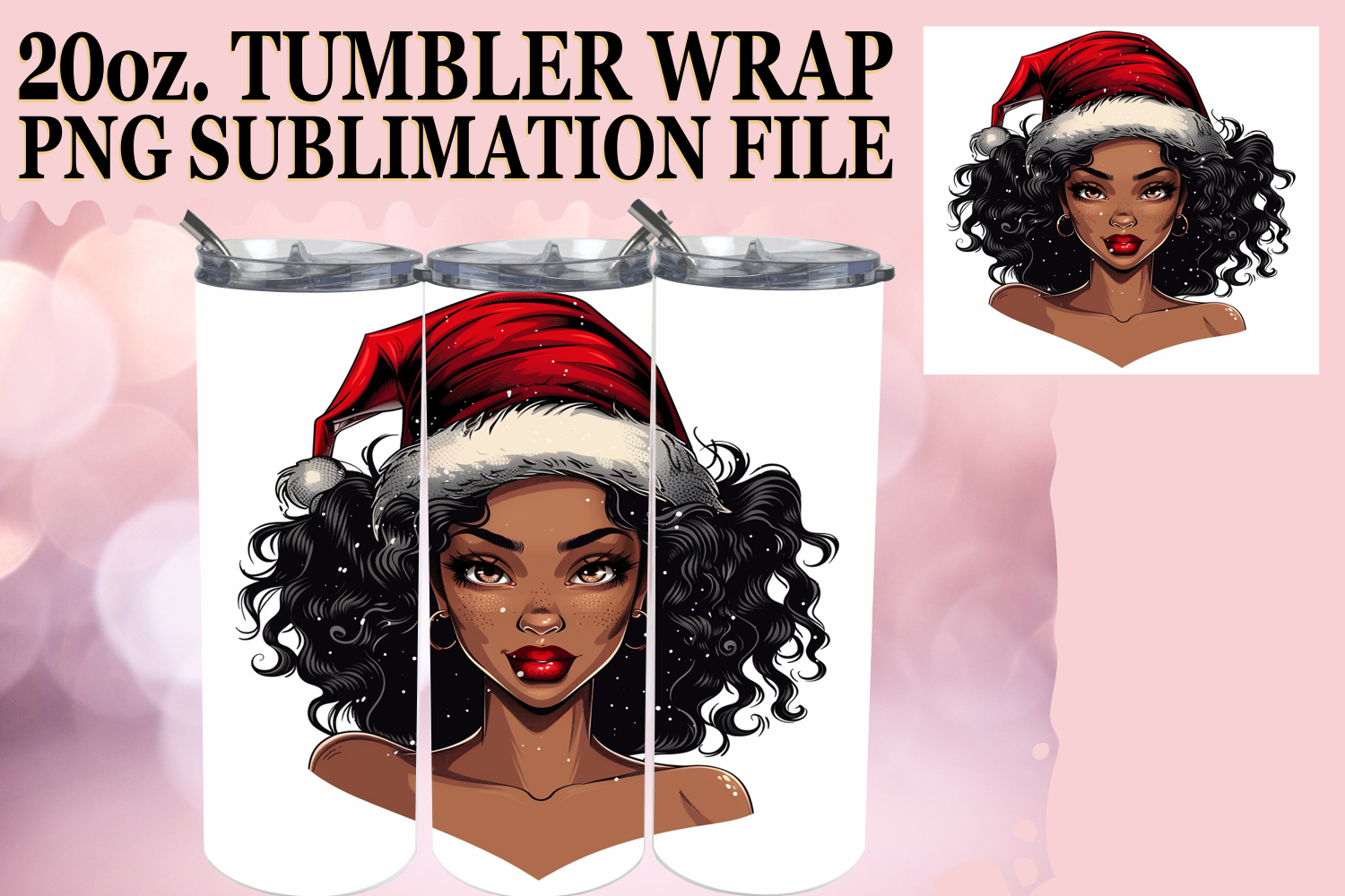 Happy Hearts 20oz tumbler wrap, Xmas Girl example image 1