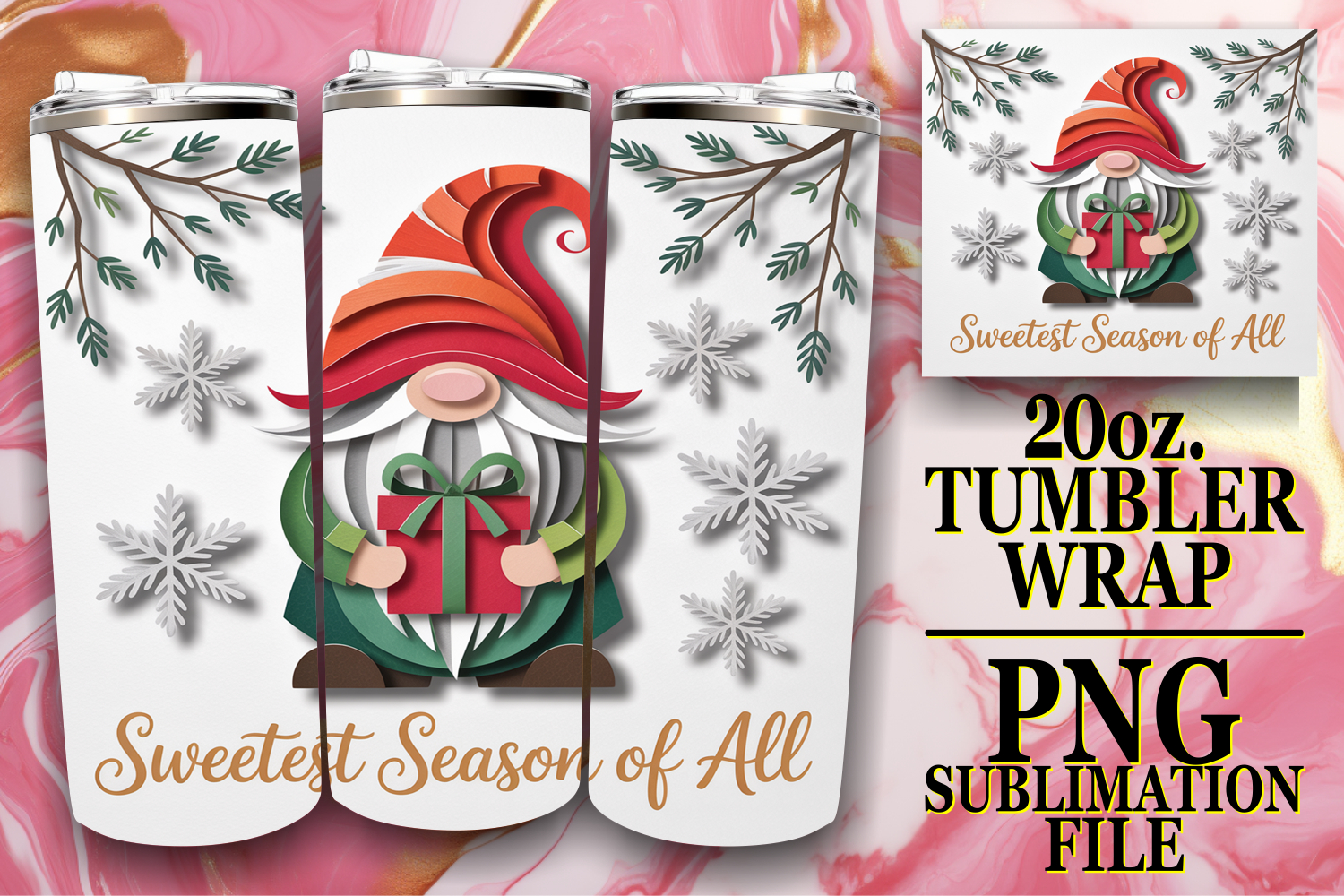 Sweet vibes 20oz tumbler wrap, Holiday Gnome example image 1