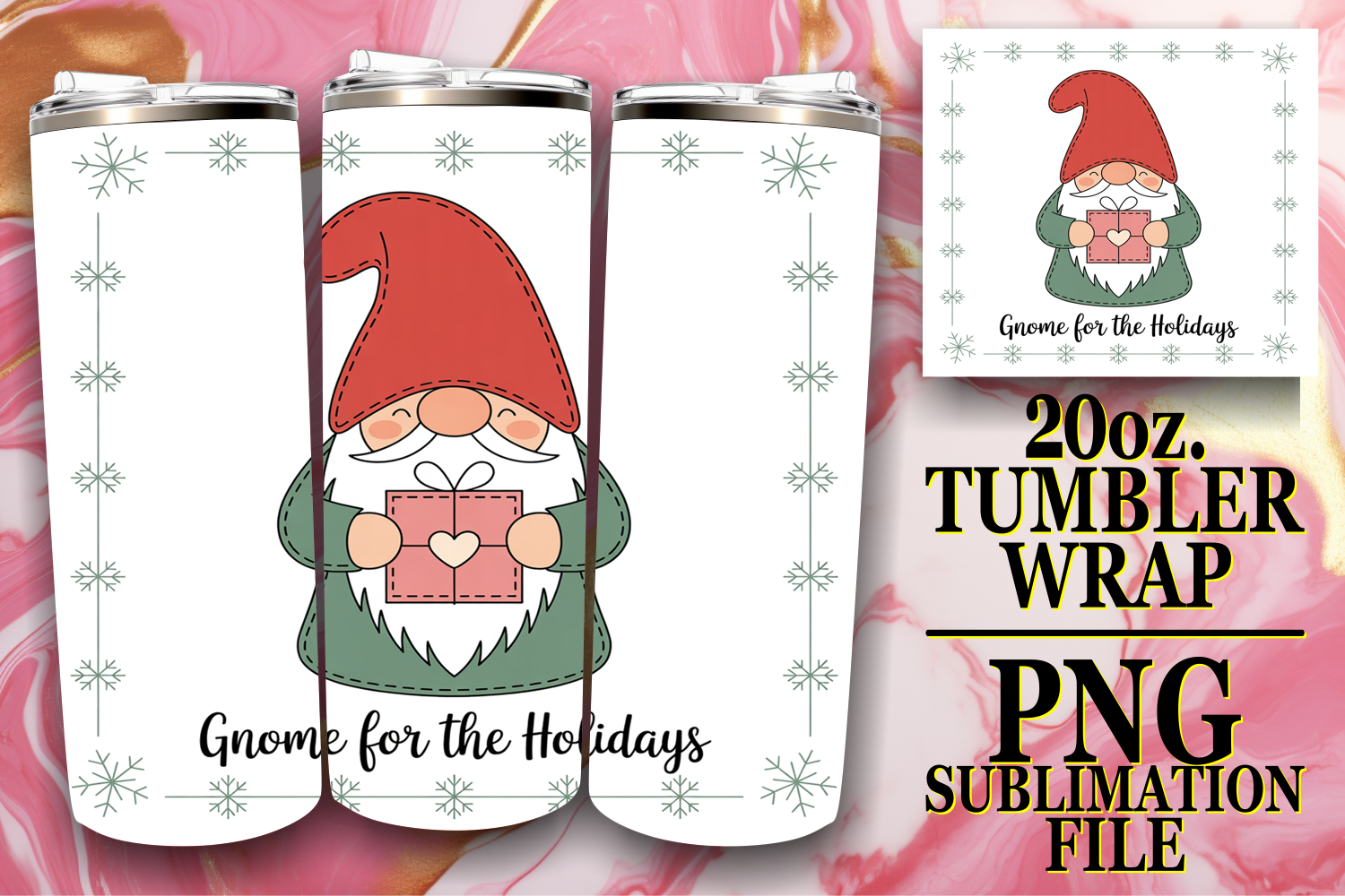 Unique adventures 20oz tumbler wrap, Holiday Gnome