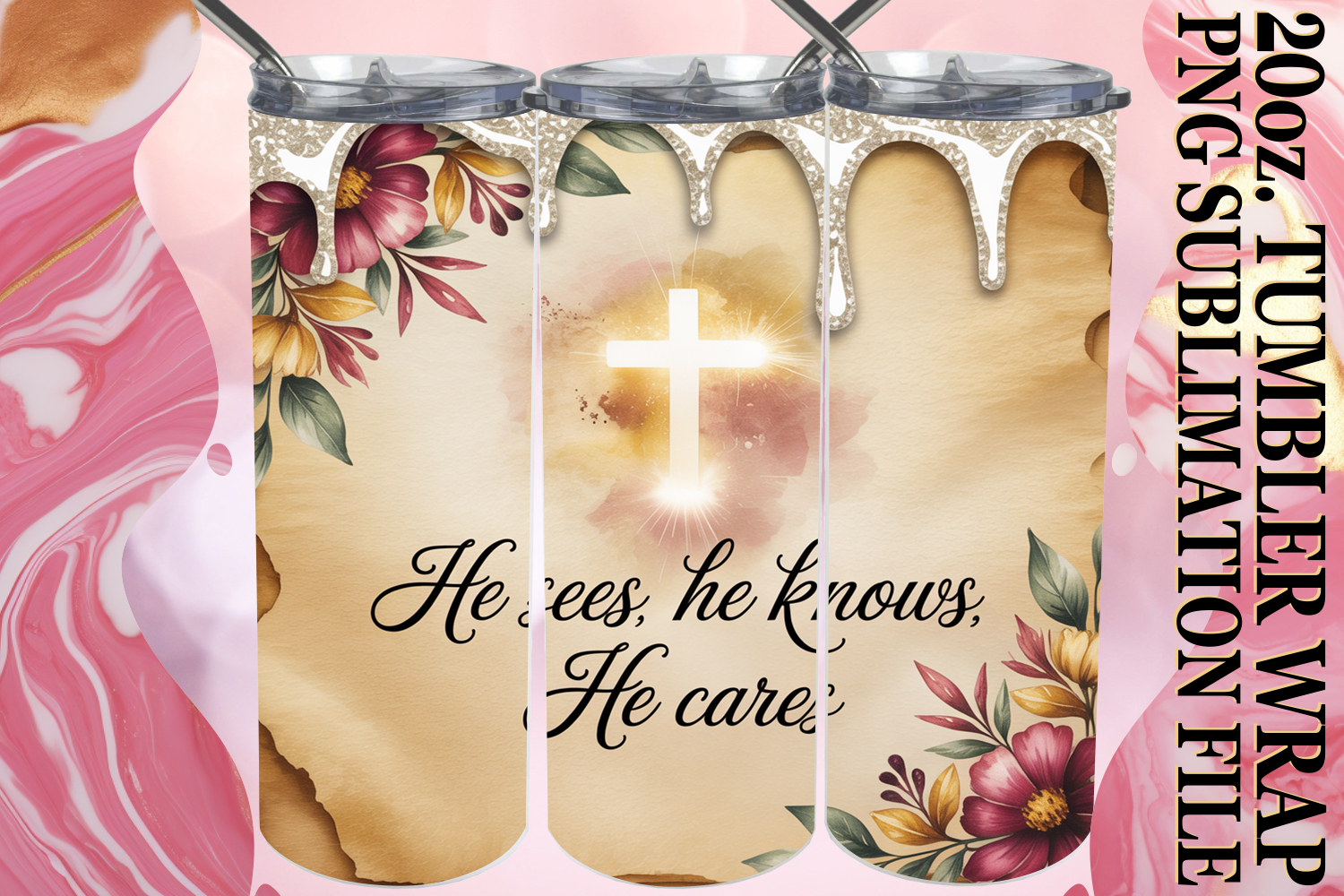 Bright Sublimation 20oz tumbler wrap, Christian example image 1