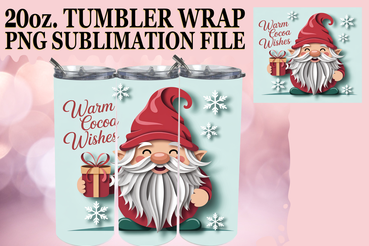 Heartfelt joy 20oz tumbler wrap, Holiday Gnome example image 1