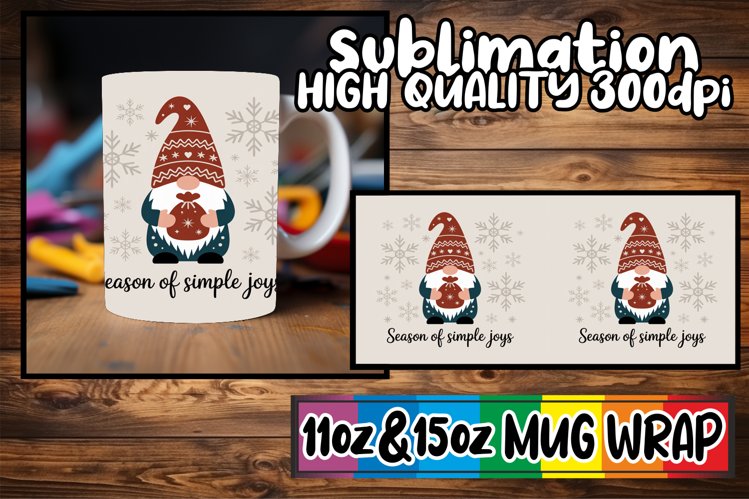 Timeless joy 11oz 15oz sublimation wrap, Holiday Gnome example image 1