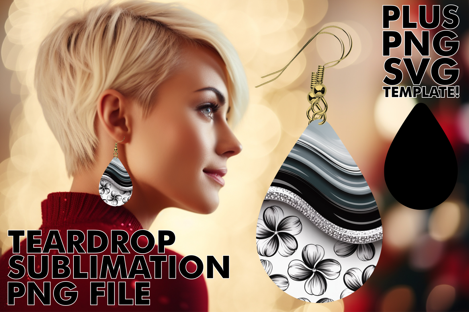 Bold Teardrop Earrings Gift PNG, Pattern