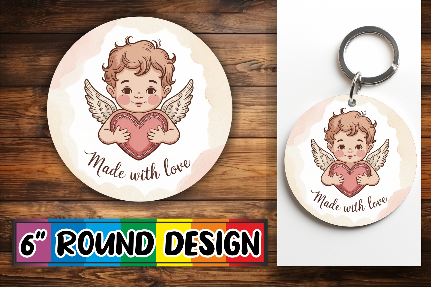 Joyful Car Coaster Round Style PNG, Cupid