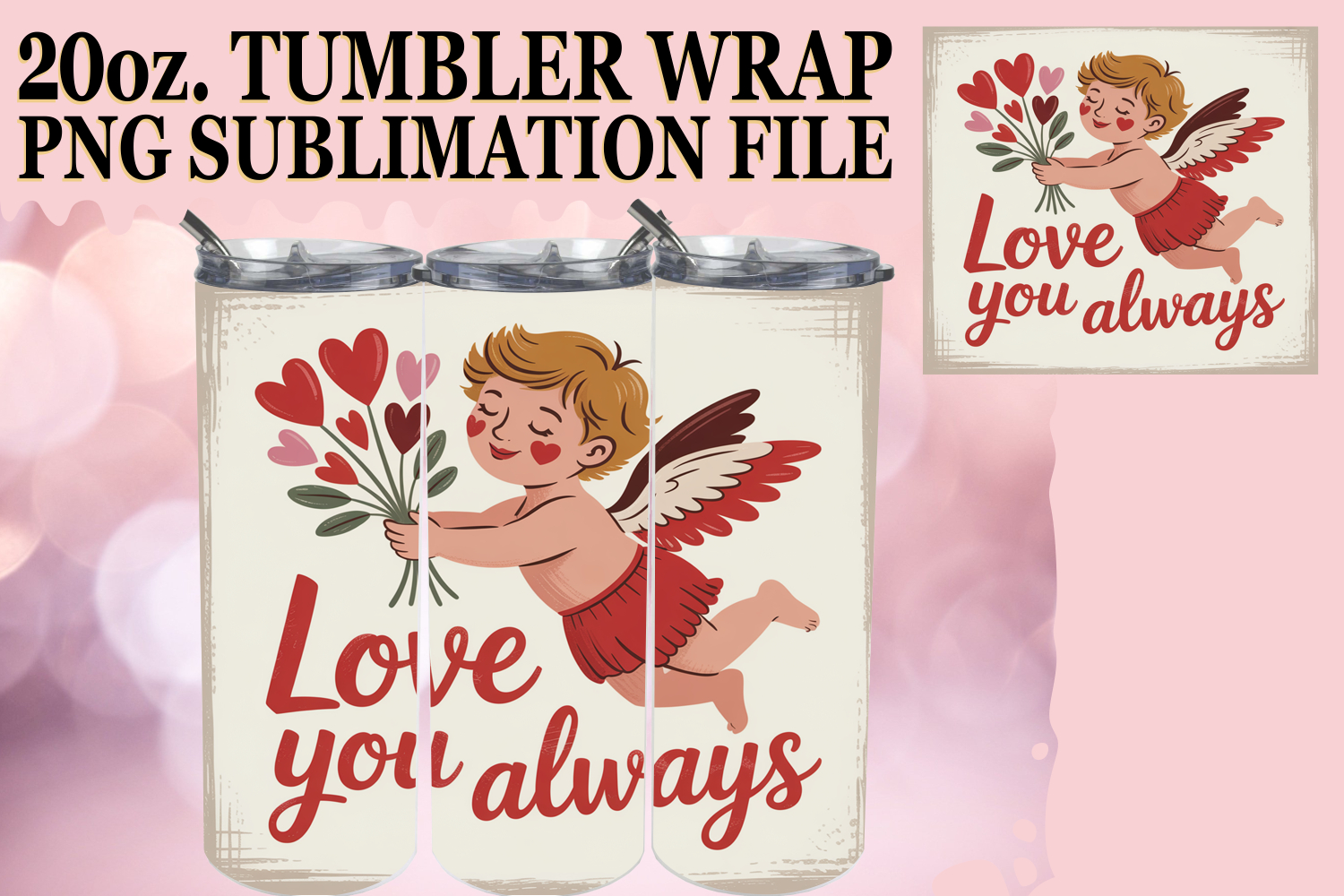 Playful moments 20oz tumbler wrap, Cupid example image 1