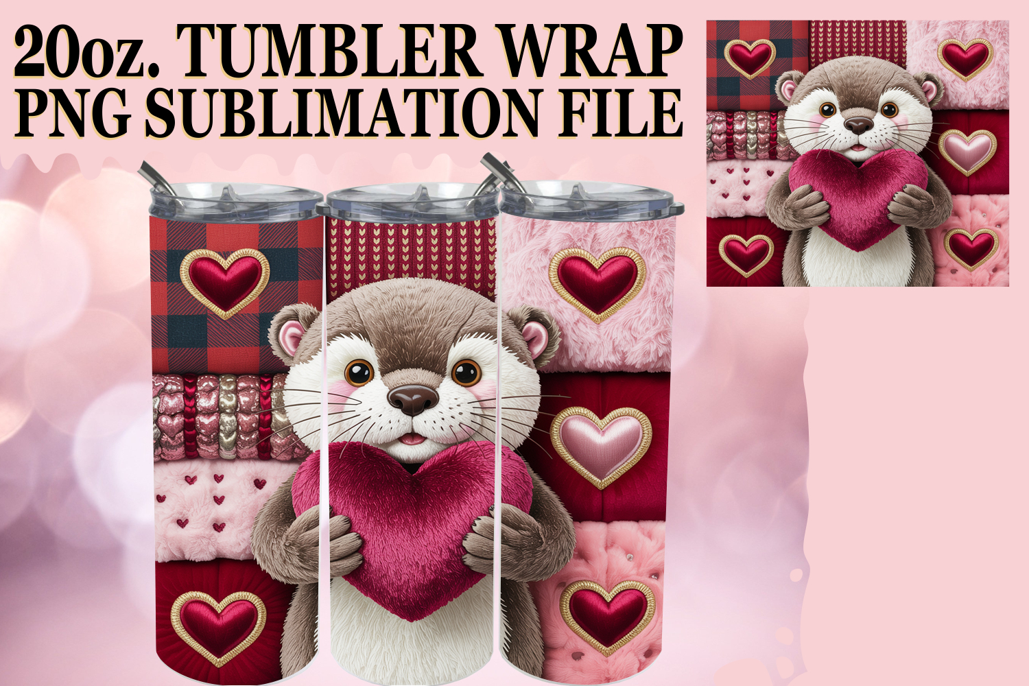 Similar Design Products to Refreshing days 20oz tumbler wrap, Valenines Animals