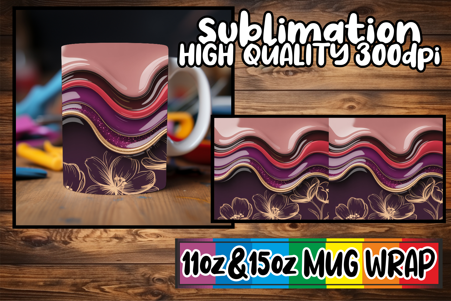To effectively utilize this mug wrap design, a strong grasp of sublimation techniques is essential. Ensure you possess all necessary equipment and software before purchasing, as I cannot assist with the sublimation process itself. Support is available for issues directly related to my files.