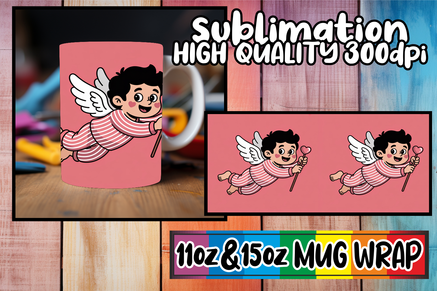 Gentle breezes 11oz 15oz mug wrap, Cupid example image 1