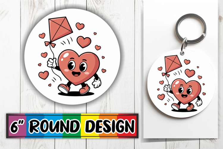 Playful Keychain Circle PNG Design, Valenines Heart example image 1