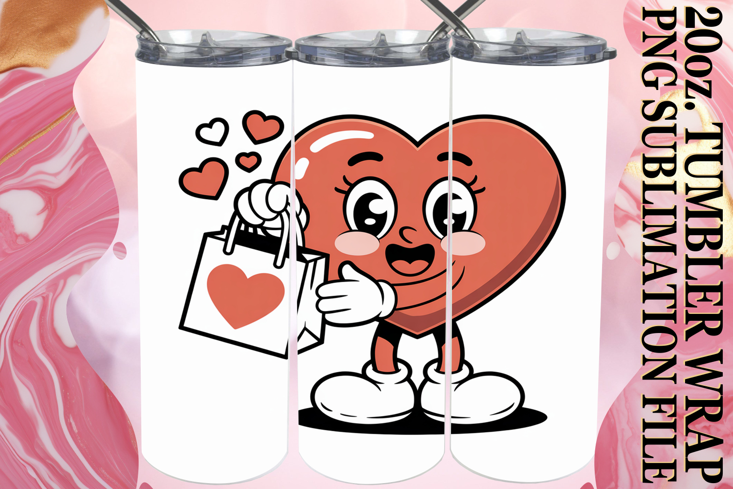 Bright Sublimation 20oz tumbler wrap, Valenines Heart example image 1