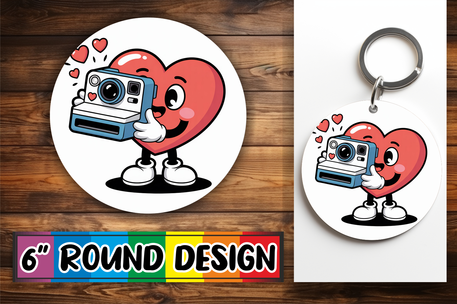 Similar Design Products to Whimsical Circle Keychain Sublimation PNG, Valenines Heart