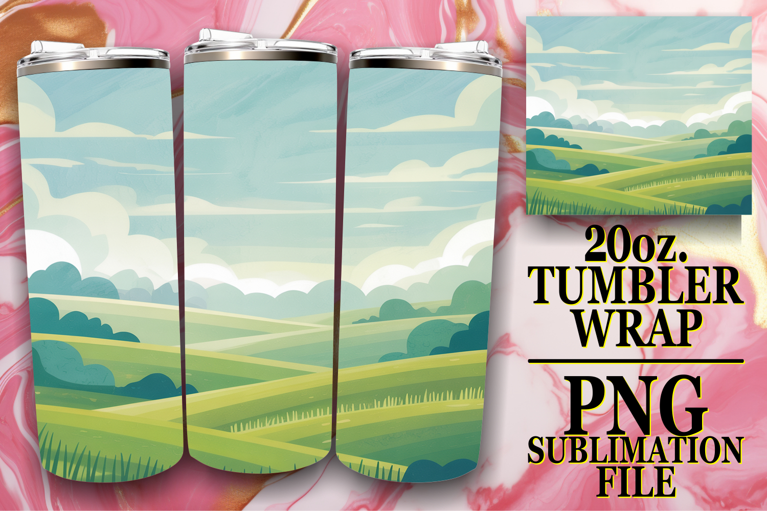 Create beautiful, ized tumblers with our **20 oz Skinny Tumbler Wrap** sublimation template.