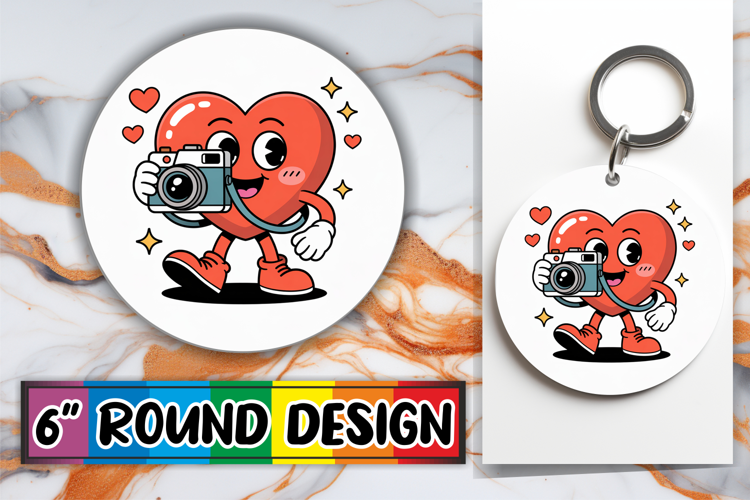 Sweet Sublimation Circle Keychain, Valenines Heart example image 1