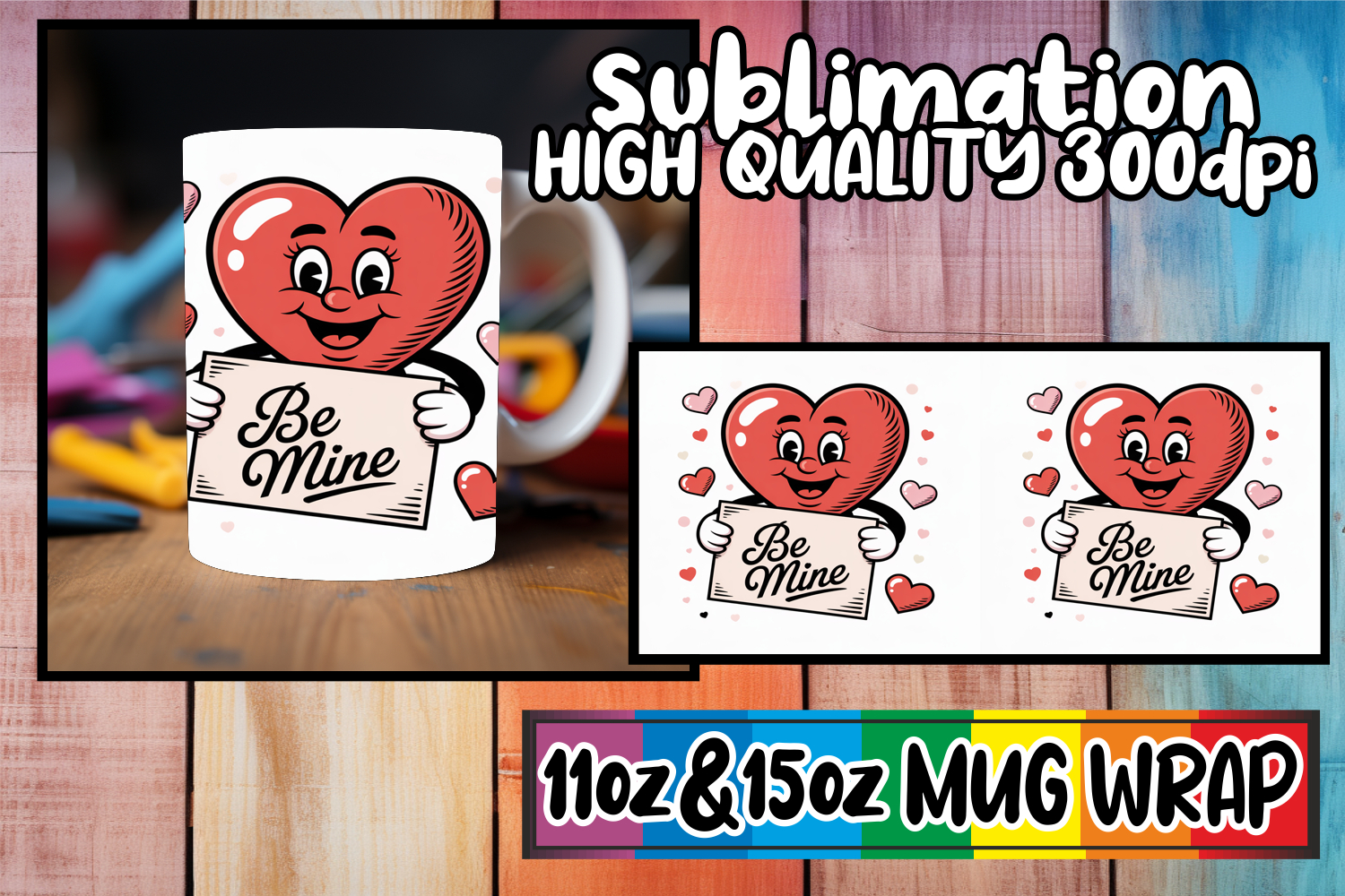 Playful joy 11oz 15oz mug wrap, Valenines Heart