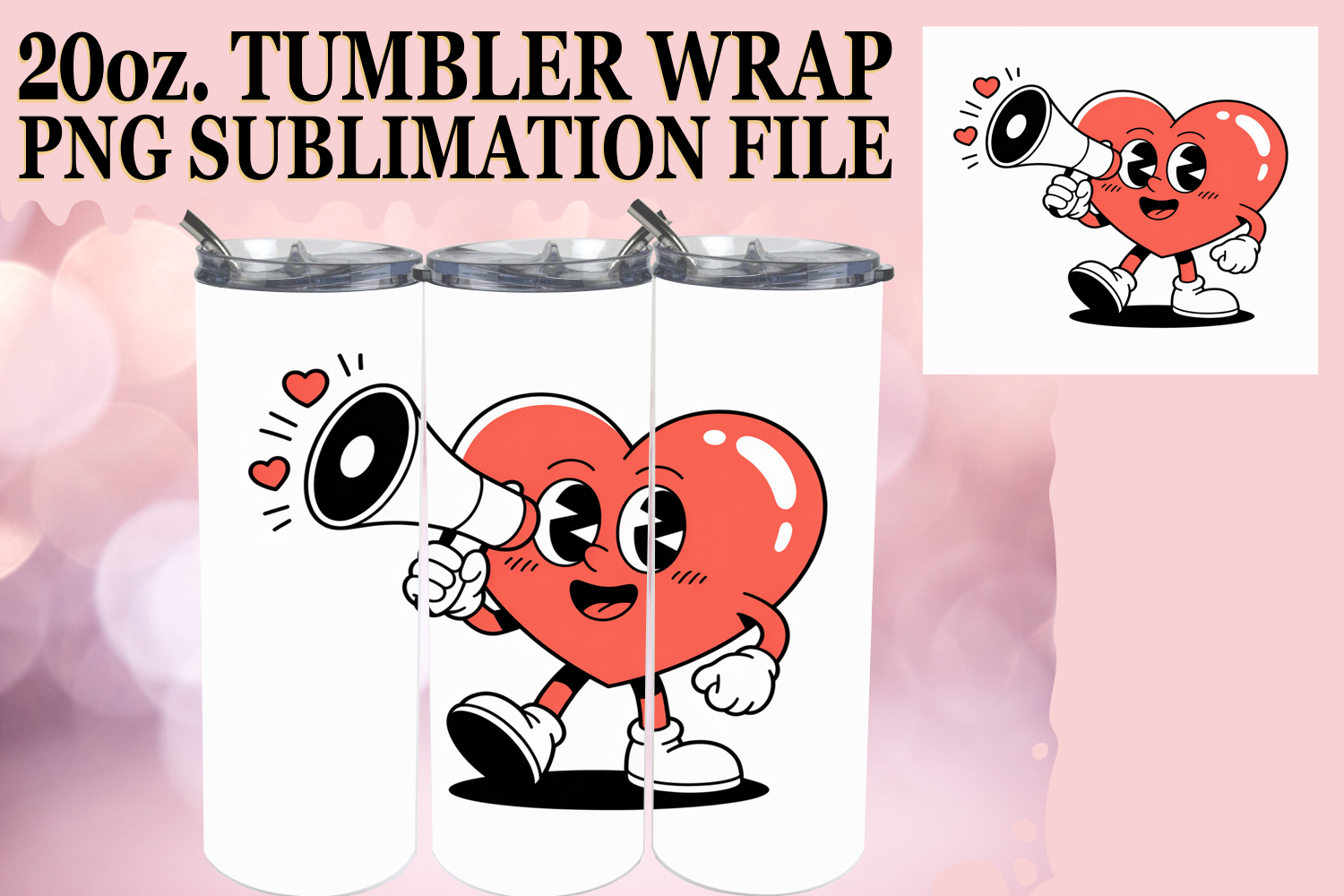 Uplifting Gift 20oz tumbler wrap, Valenines Heart example image 1