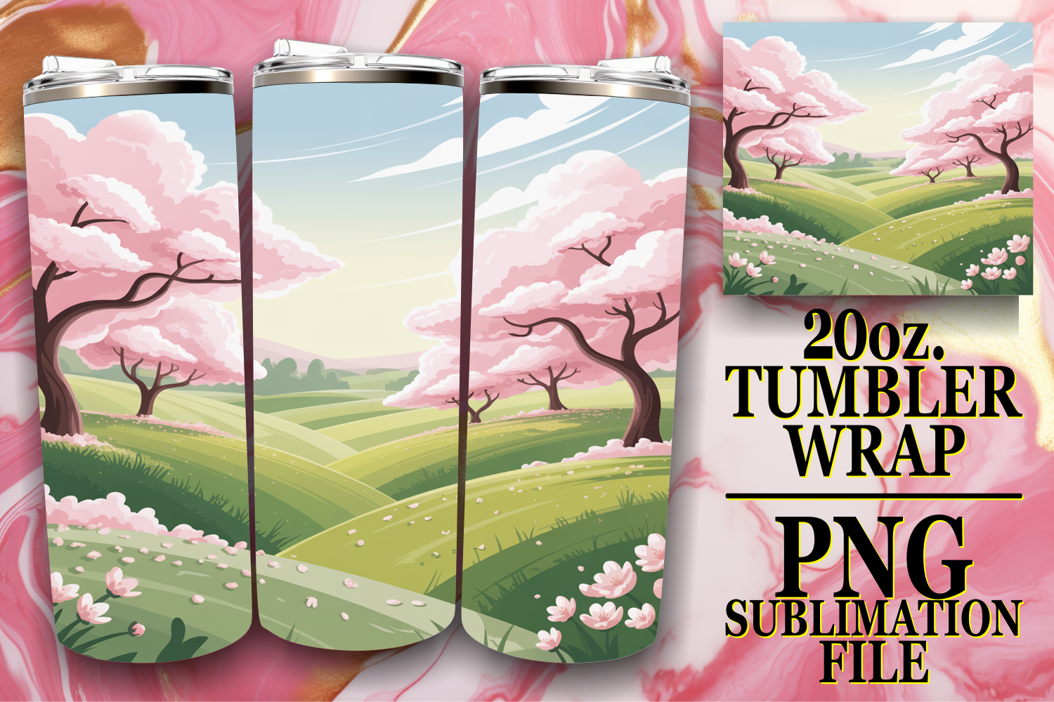 Bright Sublimation 20oz tumbler wrap, Spring example image 1