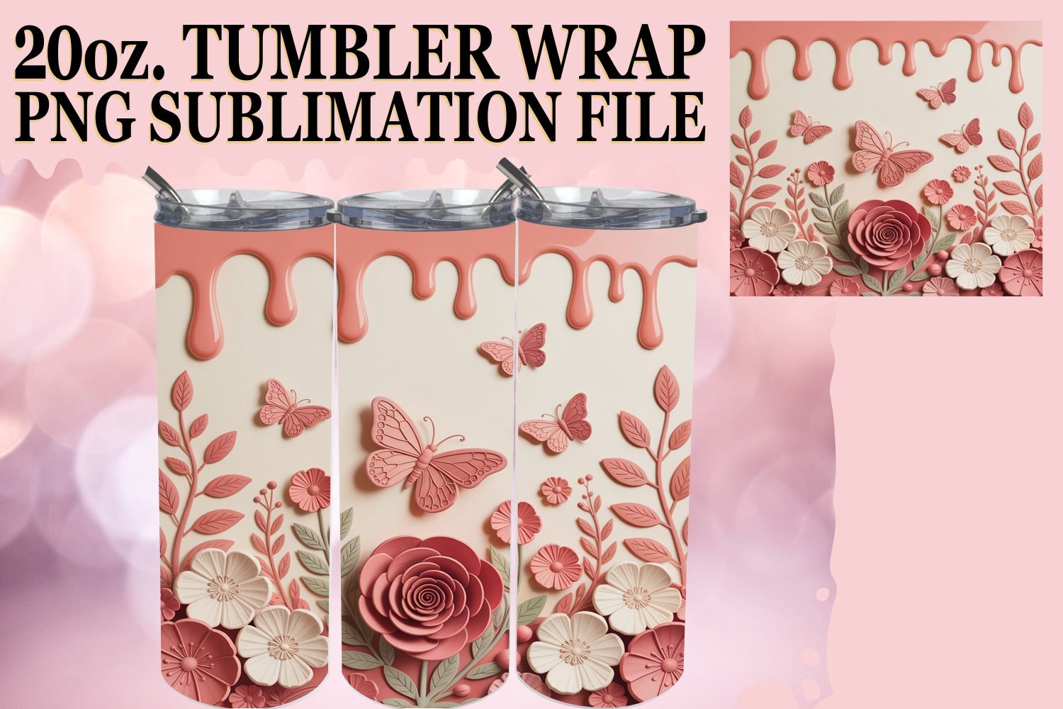 Heartfelt dreams 20oz tumbler wrap, 3D Flowers