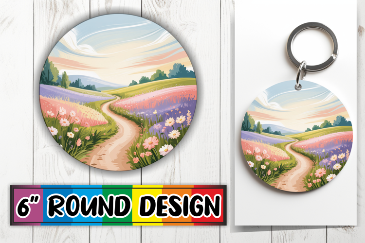 Similar Design Products to Whimsical Round Keychain Sublimation PNG, Spring