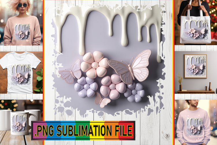 Joyful Tote Bag Art Ideas PNG, 3D Flowers example image 1