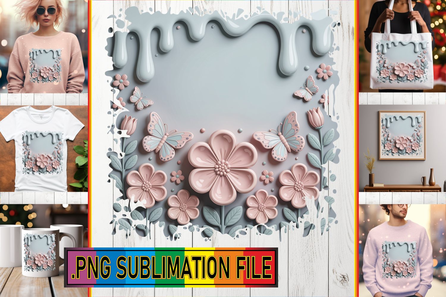 Cheerful PNG Sublimation Art, 3D Flowers