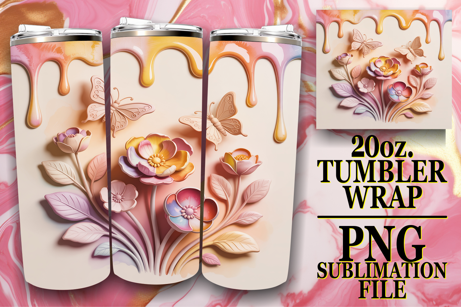 SERENE ESCAPES 20oz TUMBLER WRAP, 3D Flowers example image 1
