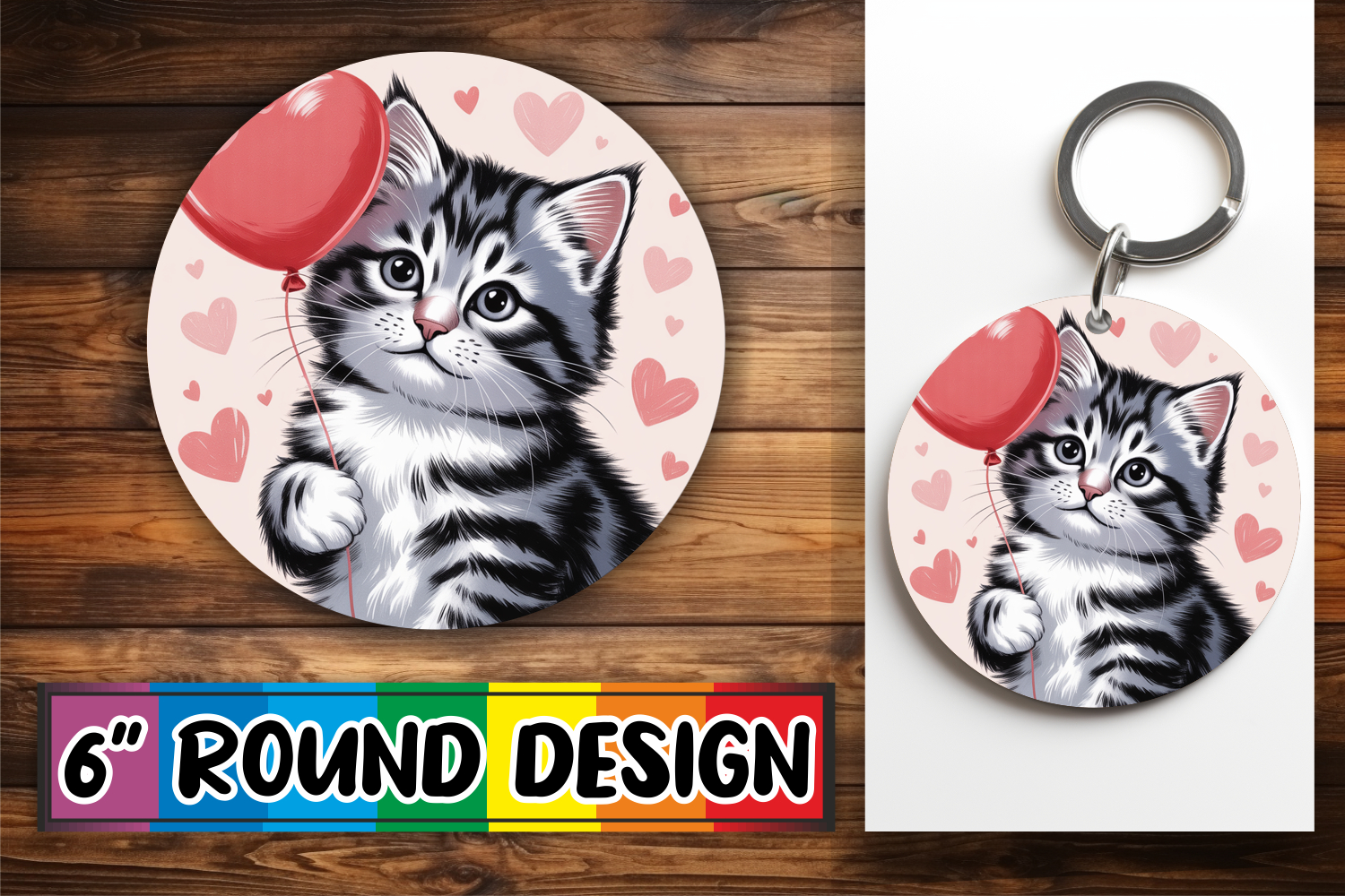 Whimsical Round Design Ornaments PNG, Cat Valentin's Day example image 1