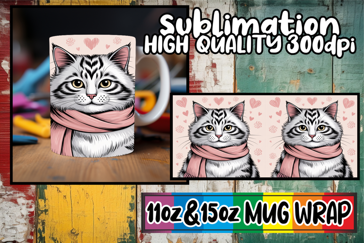 Enchanting thoughts sublimation mug wrap, Valentines Cat example image 1