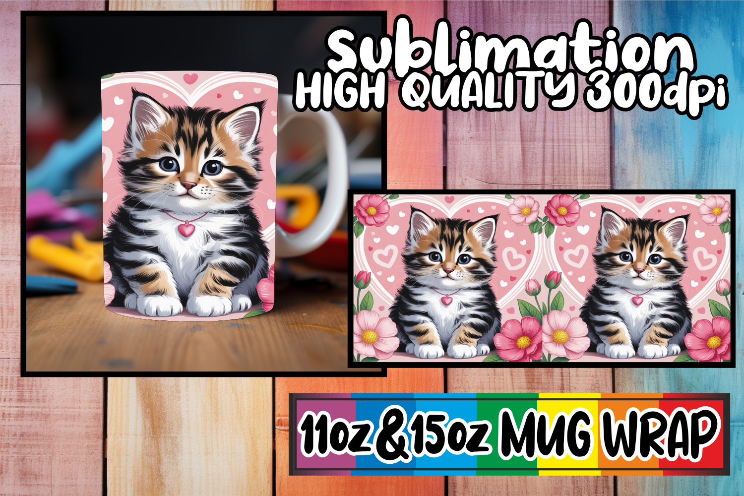 Similar Design Products to Radiant vibes 11oz 15oz sublimation wrap, Valentines Cat