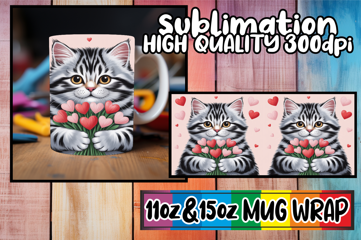 Bright beginnings 11oz 15oz sublimation wrap, Valentines Cat example image 1