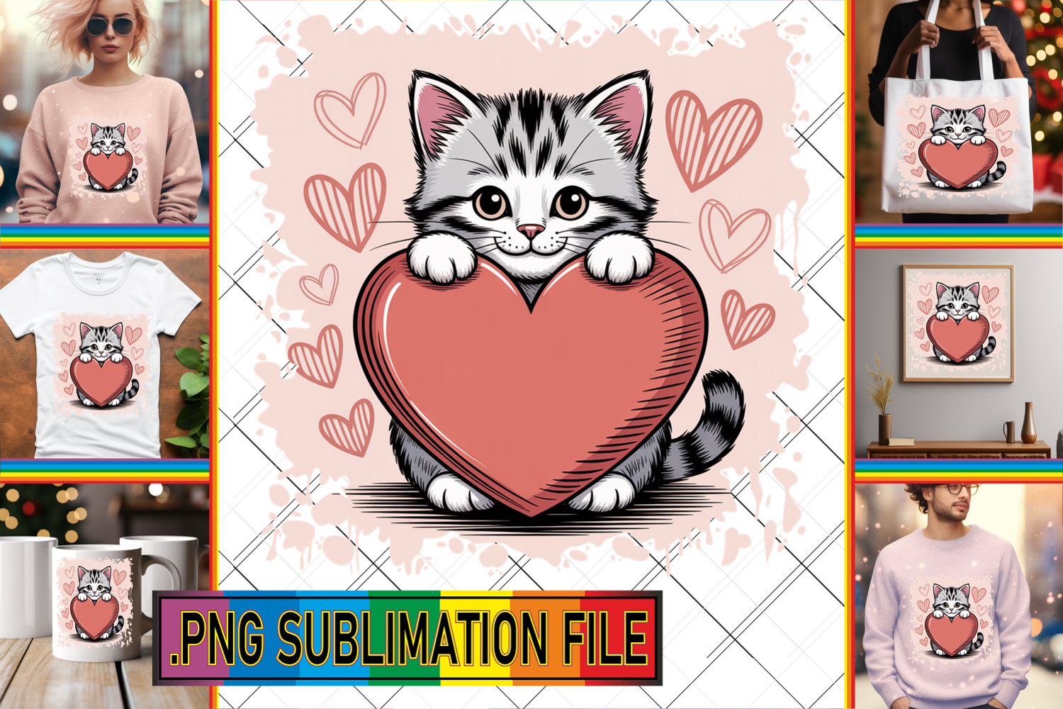 RADIANT PNG Sublimation Gifts, Cat Valentin's Day