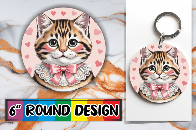 Bright Circle Sublimation Keychain PNG, Cat Valentin's Day
