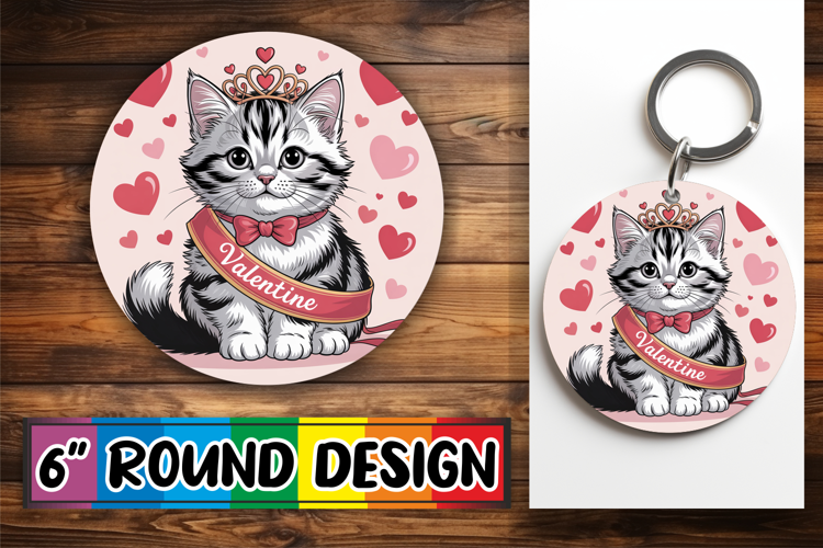 Whimsical Keychain Round Style, Cat Valentin's Day example image 1