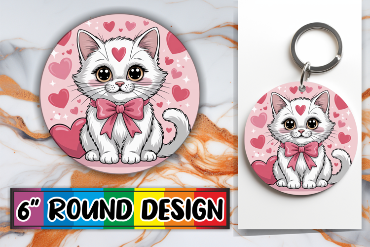 Joyful Round Coaster Sublimation, Cat Valentin's Day example image 1
