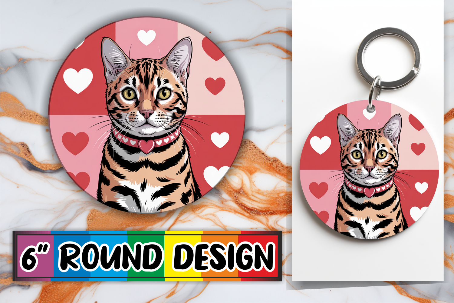 Sweet Circle Keychain Design PNG, Cat Valentin's Day