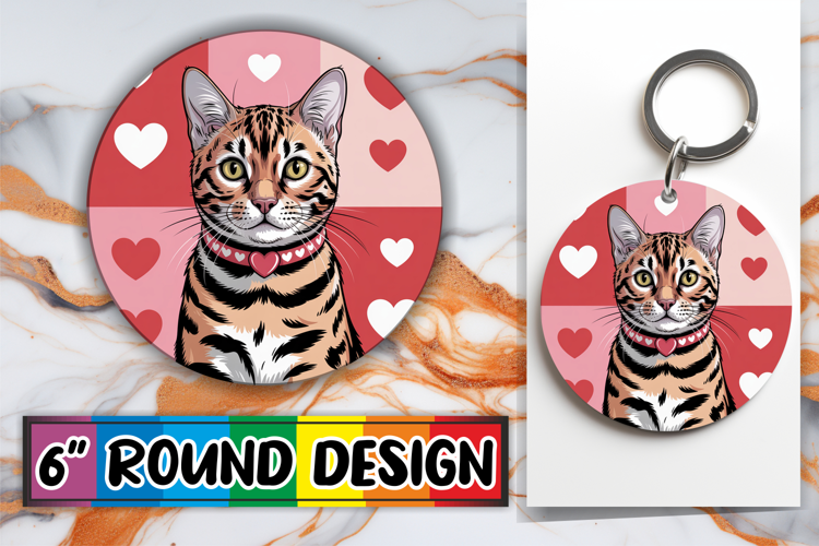 Sweet Circle Keychain Design PNG, Cat Valentin's Day example image 1