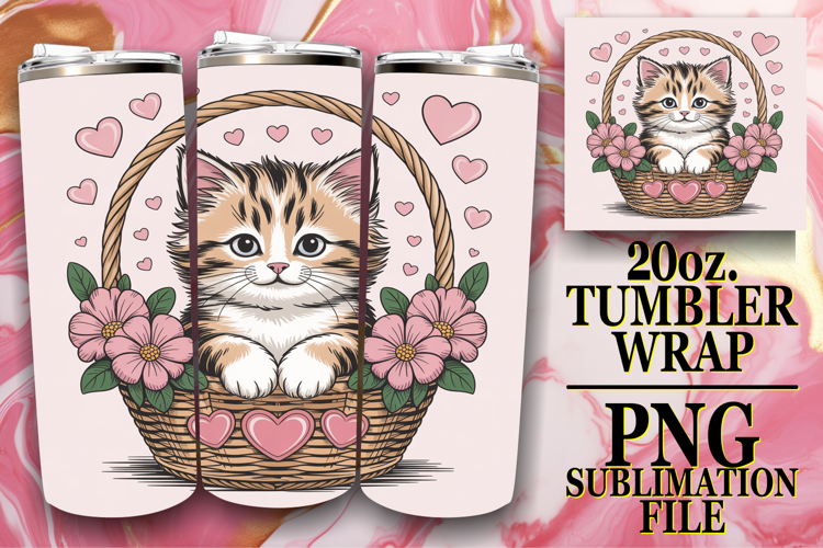 Bright Reflections 20oz tumbler wrap, Valentines Cat example image 1