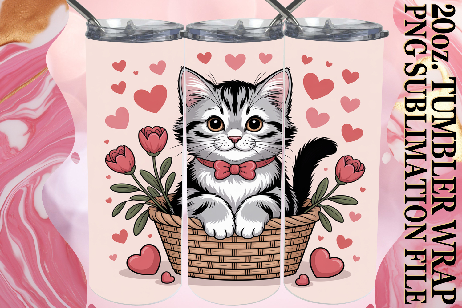 JOYFUL GIFT 20oz TUMBLER WRAP, Valentines Cat example image 1