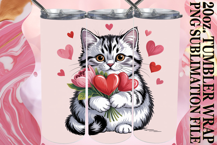 Blissful Moments 20oz tumbler wrap, Valentines Cat example image 1