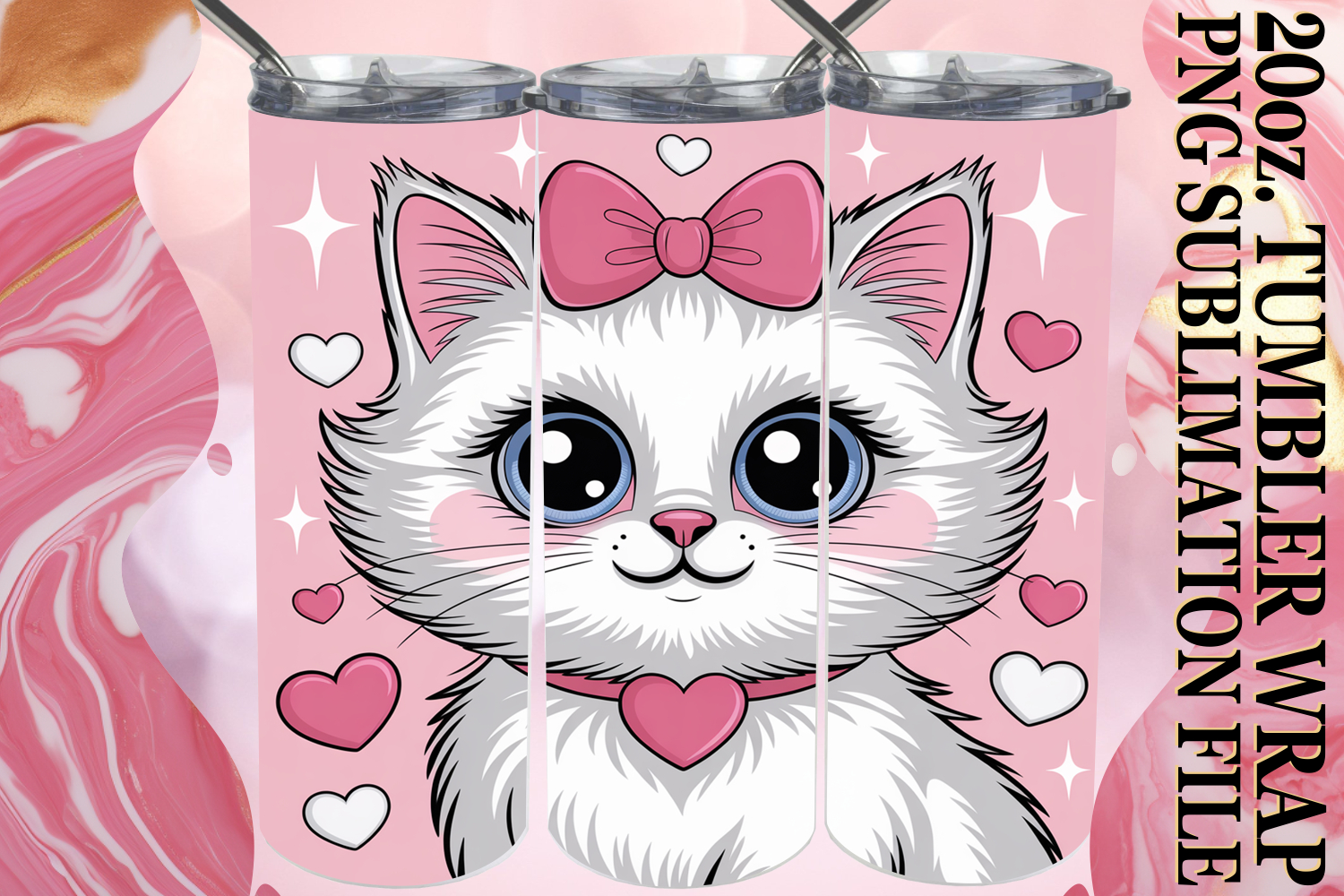 RADIANT SMILES 20oz TUMBLER WRAP, Valentines Cat example image 1