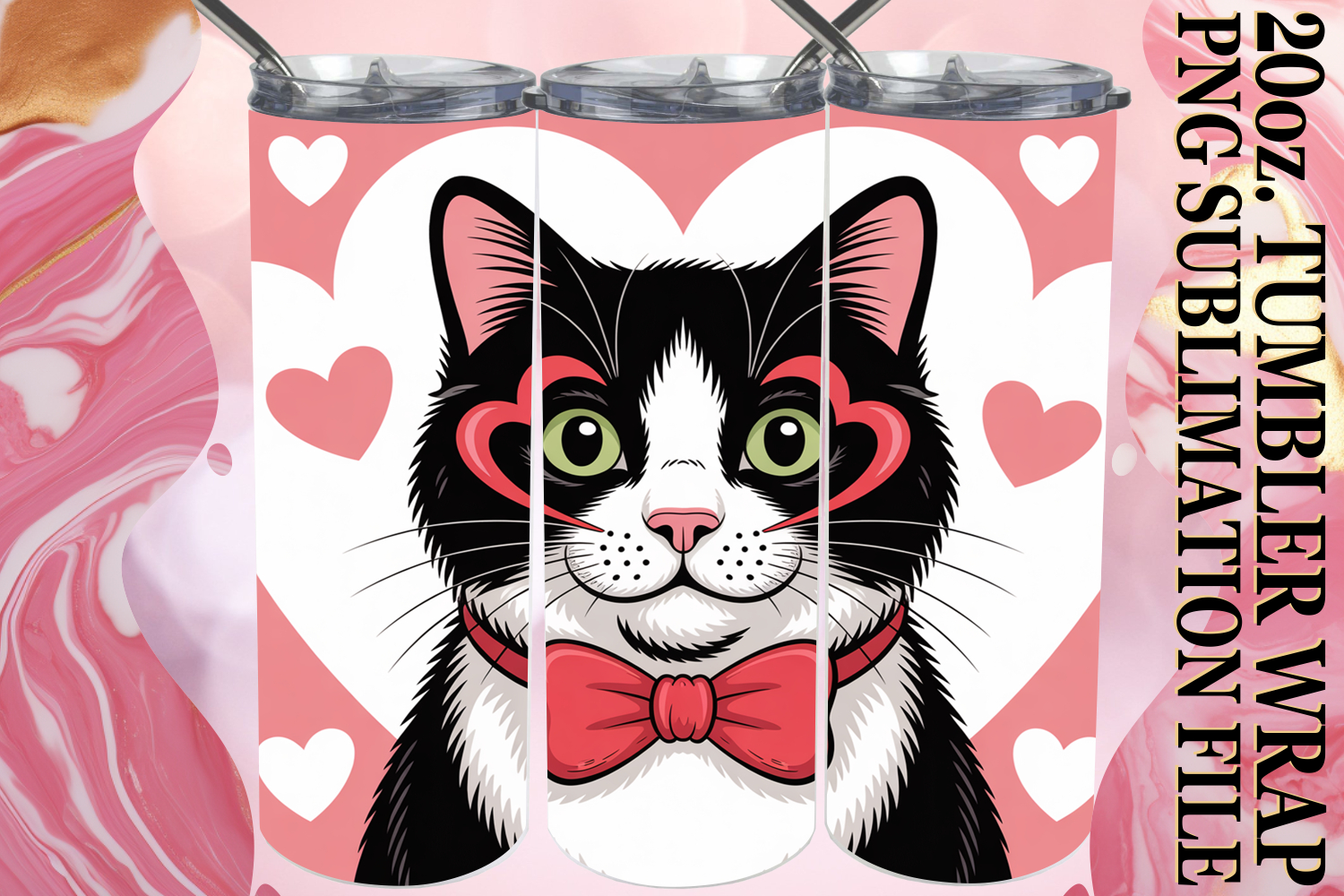 Cozy afternoons 20oz tumbler wrap, Valentines Cat example image 1