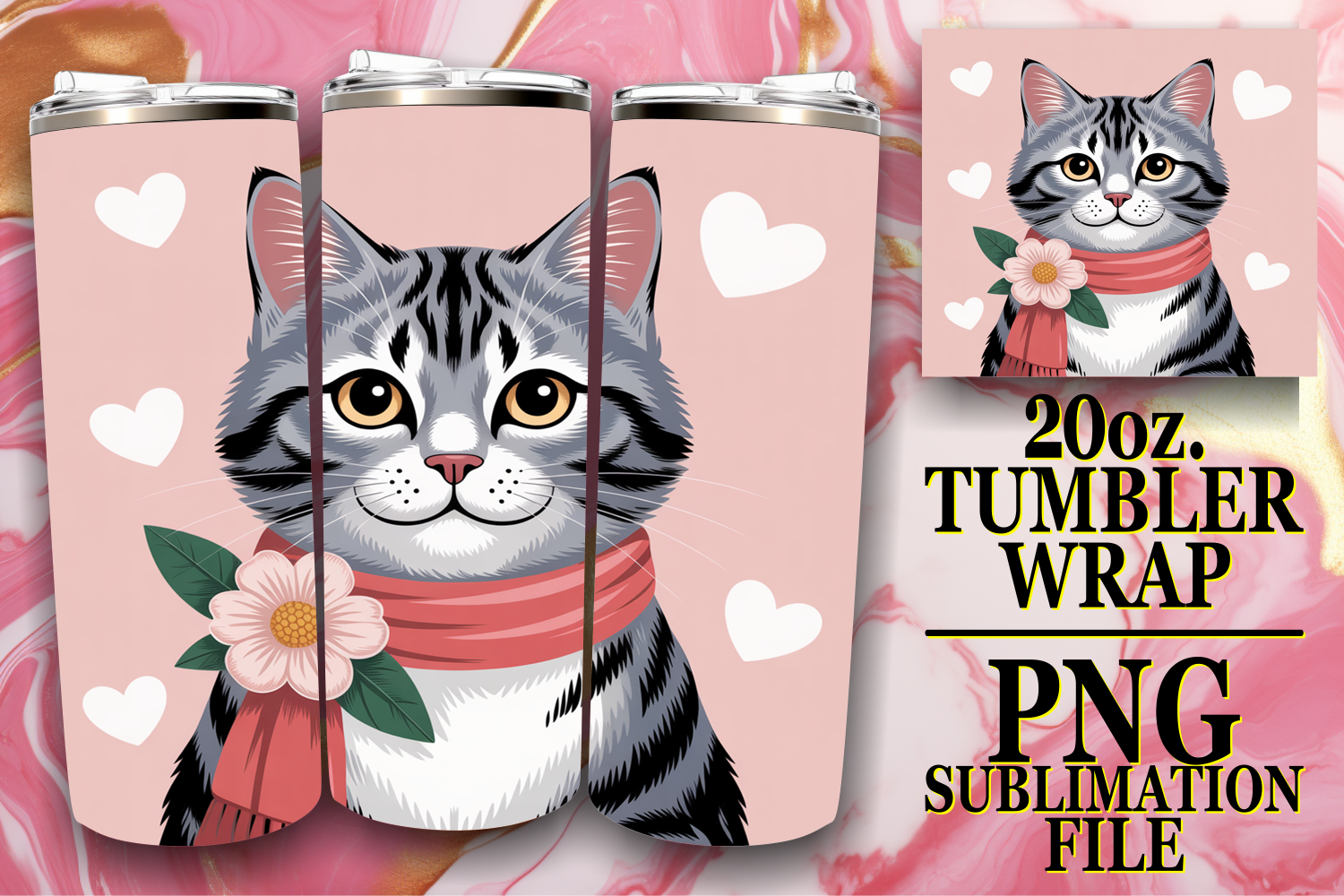 Similar Design Products to Whimsical views 20oz tumbler wrap, Valentines Cat