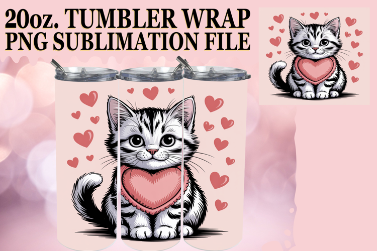 Uplifting spirits 20oz tumbler wrap, Valentines Cat example image 1