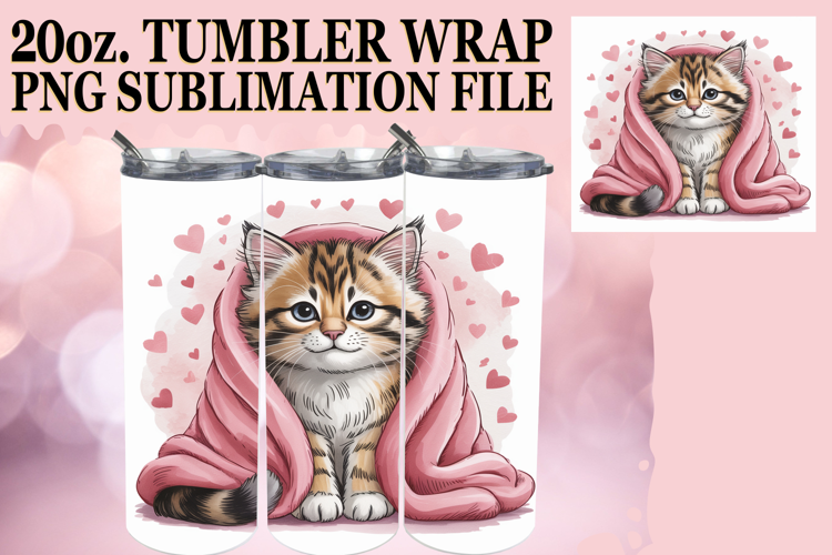 Cozy vibes 20oz tumbler wrap, Valentines Cat