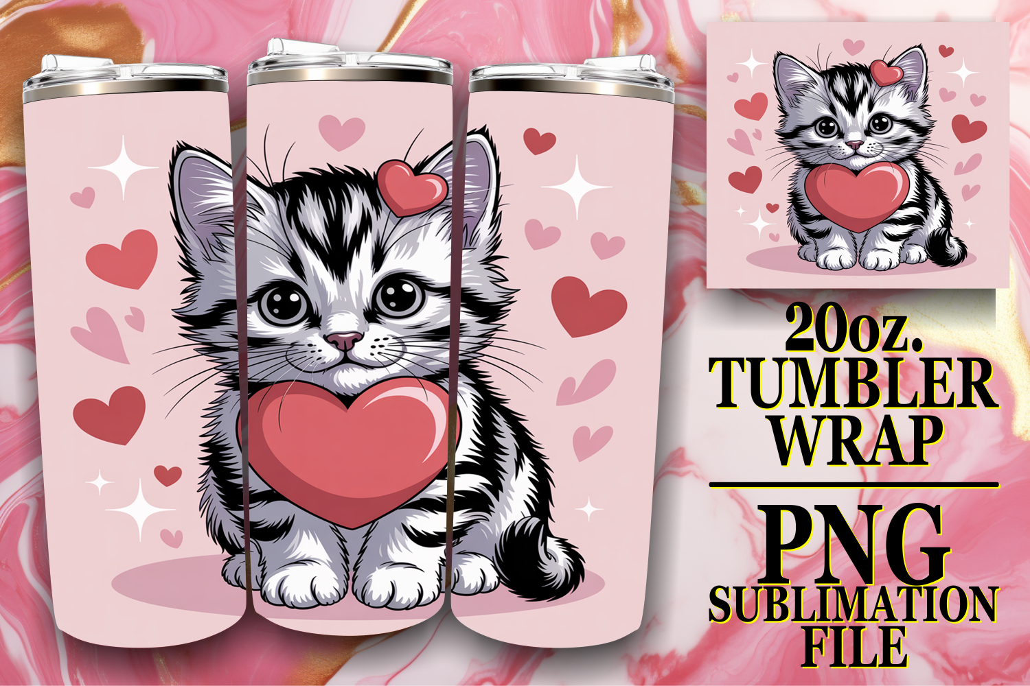 Radiant memories 20oz tumbler wrap, Valentines Cat example image 1