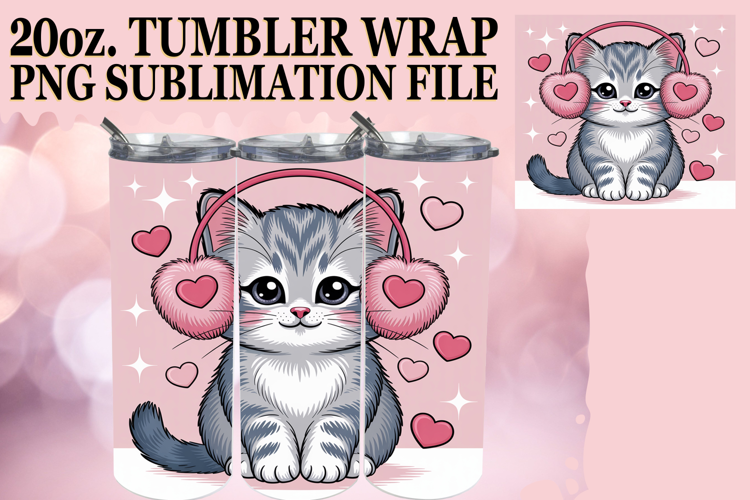 Radiant joy 20oz tumbler wrap, Valentines Cat example image 1
