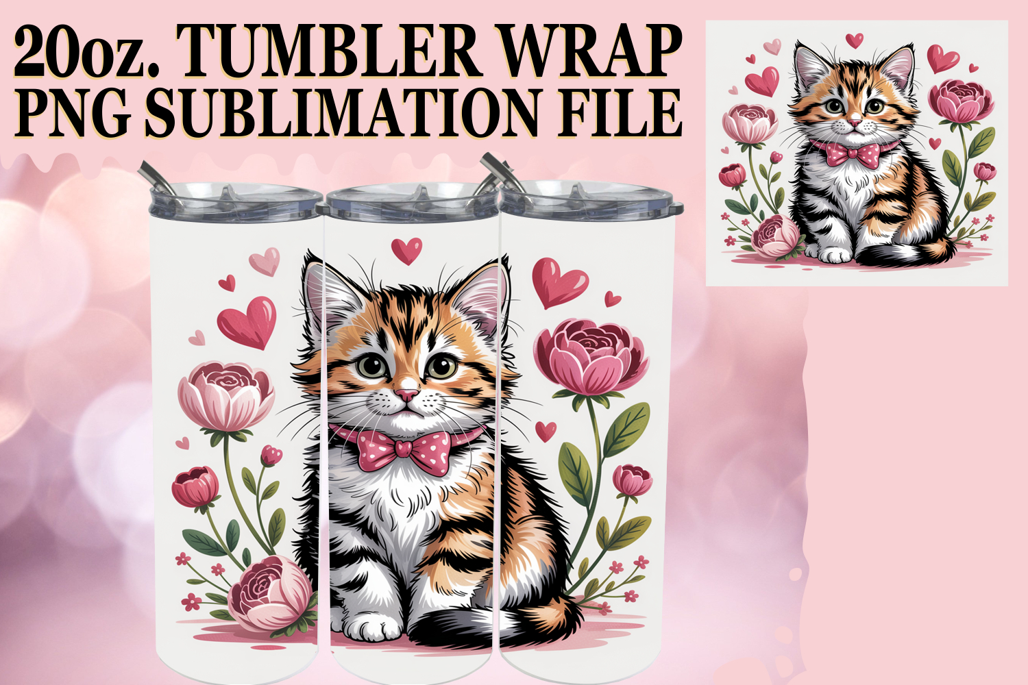 Unique adventures 20oz tumbler wrap, Valentines Cat example image 1