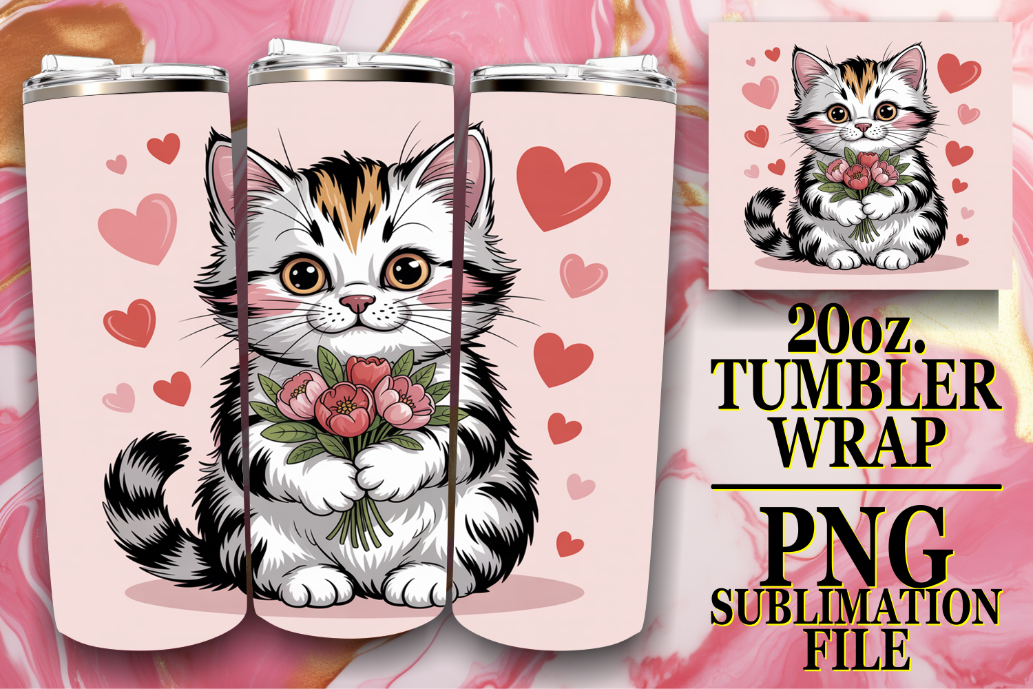 Bright reflections 20oz tumbler wrap, Valentines Cat example image 1
