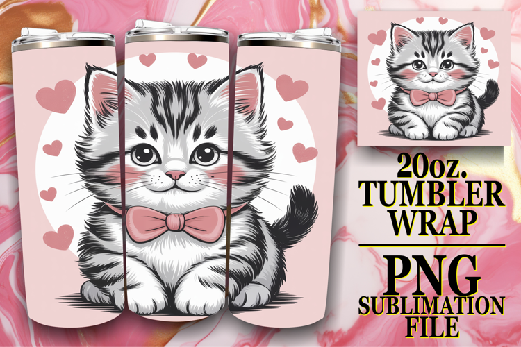 Radiant thoughts 20oz tumbler wrap, Valentines Cat example image 1