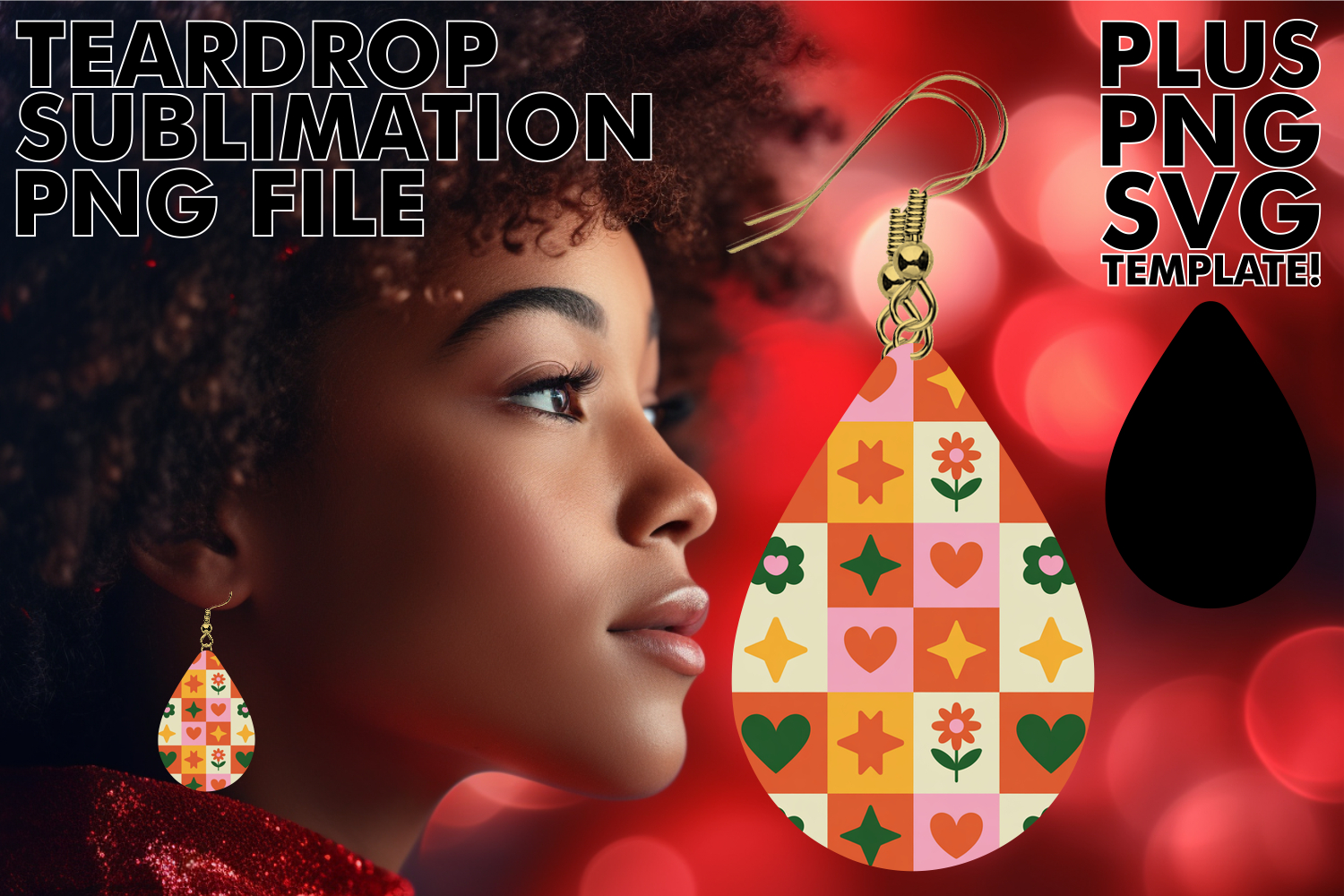 Unique TEARDROP Earrings Magic PNG, Valentine's Pattern