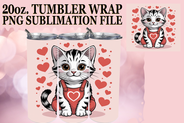 BLISSFUL DAYS 20oz TUMBLER WRAP, Valentines Cat example image 1